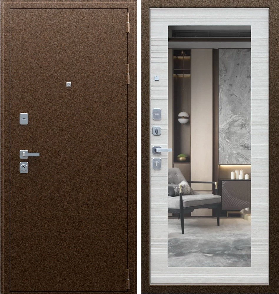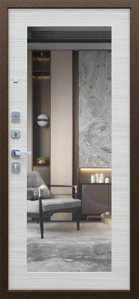 Надежная входная Дверь Спартак с зеркалом Акация Светлая Поперечная премиум класса по цене 36 175 руб. Большая толщина стали защитит от проникновения в ваш дом, квартиру или коттедж. Используется очень качественная фурнитура: замки, цилиндры, ручки, защелки. Покрытие и отделка двери изготовлено под внимательным контролем производителя. Дверь имеет долгий срок службы и гарантию.