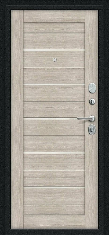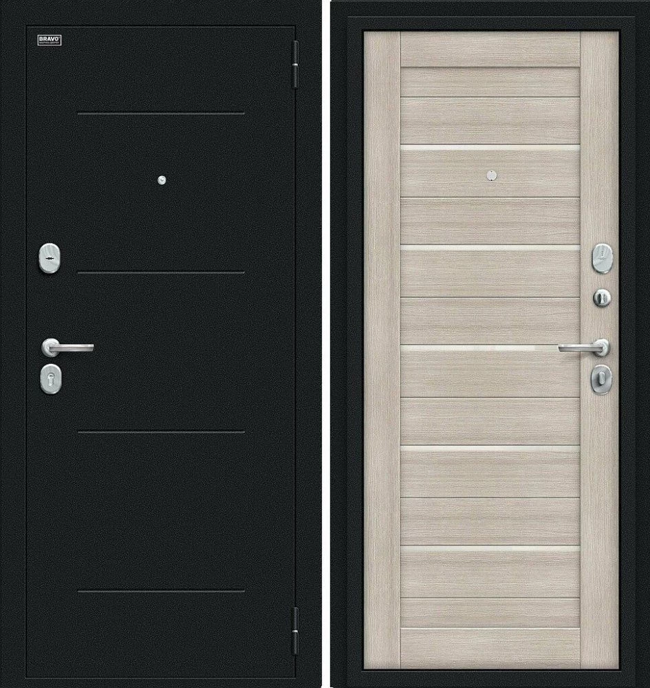 Надежная входная Браво Техно Kale Букле черное/Cappuccino Veralinga премиум класса по цене 33 925 руб. Большая толщина стали защитит от проникновения в ваш дом, квартиру или коттедж. Используется очень качественная фурнитура: замки, цилиндры, ручки, защелки. Покрытие и отделка двери изготовлено под внимательным контролем производителя. Дверь имеет долгий срок службы и гарантию.