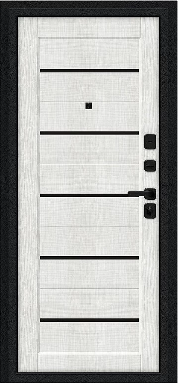 Надежная входная Дверь Браво Борн/SBlack Букле черное/Bianco Melinga премиум класса по цене 31 175 руб. Большая толщина стали защитит от проникновения в ваш дом, квартиру или коттедж. Используется очень качественная фурнитура: замки, цилиндры, ручки, защелки. Покрытие и отделка двери изготовлено под внимательным контролем производителя. Дверь имеет долгий срок службы и гарантию.