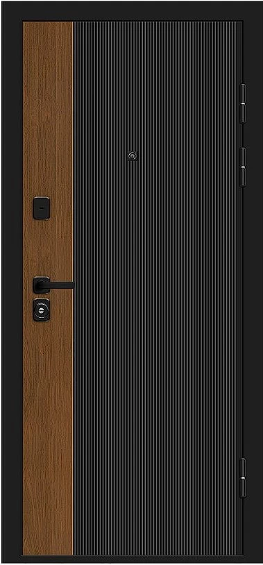 Надежная входная Дверь Браво Optim Z-2 Вертикаль Муар черный-Грецкий Орех/Белый премиум класса по цене 33 775 руб. Большая толщина стали защитит от проникновения в ваш дом, квартиру или коттедж. Используется очень качественная фурнитура: замки, цилиндры, ручки, защелки. Покрытие и отделка двери изготовлено под внимательным контролем производителя. Дверь имеет долгий срок службы и гарантию.