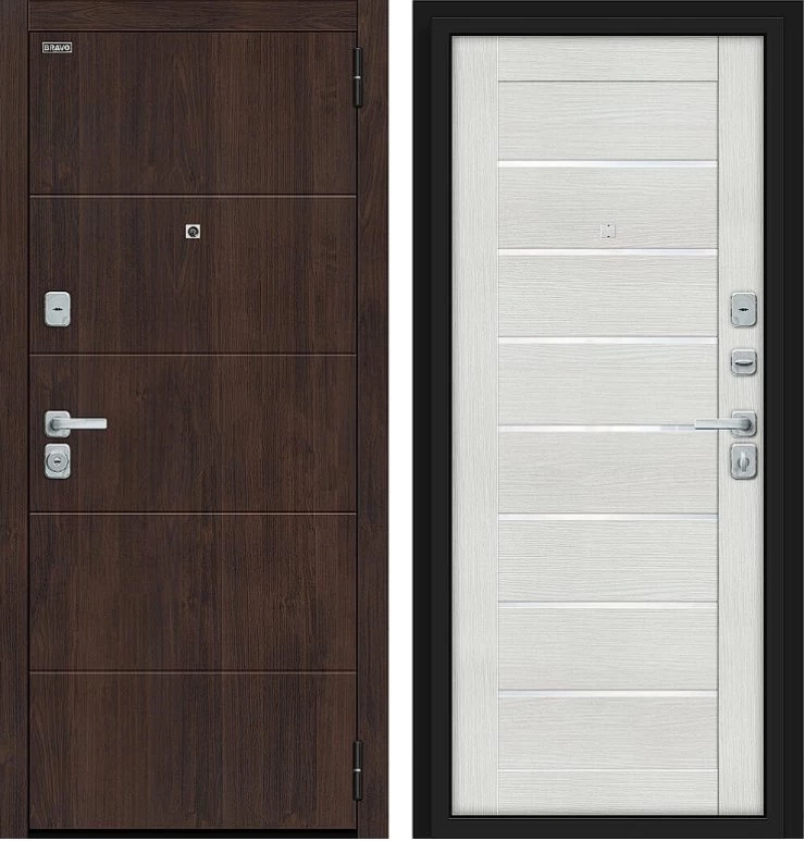 Надежная входная Дверь Браво Прайм/BChrome Almon/Bianco Melinga премиум класса по цене 39 525 руб. Большая толщина стали защитит от проникновения в ваш дом, квартиру или коттедж. Используется очень качественная фурнитура: замки, цилиндры, ручки, защелки. Покрытие и отделка двери изготовлено под внимательным контролем производителя. Дверь имеет долгий срок службы и гарантию.