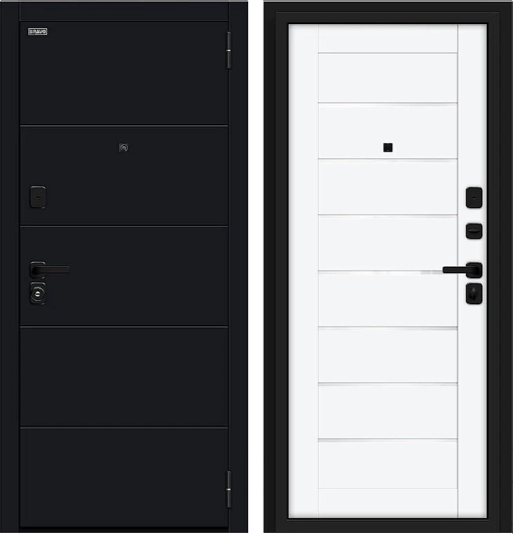 Надежная входная Дверь Браво Прайм/SBlack-Black Shell/White Silk премиум класса по цене 39 975 руб. Большая толщина стали защитит от проникновения в ваш дом, квартиру или коттедж. Используется очень качественная фурнитура: замки, цилиндры, ручки, защелки. Покрытие и отделка двери изготовлено под внимательным контролем производителя. Дверь имеет долгий срок службы и гарантию.
