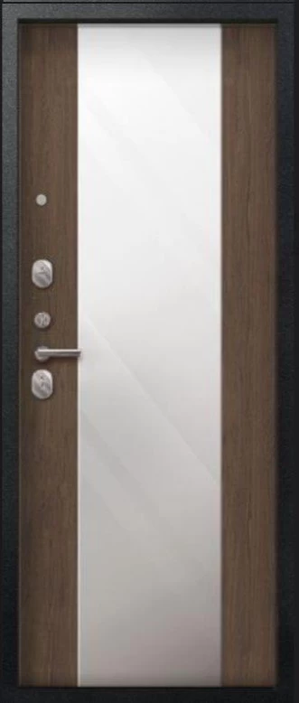 Надежная входная Дверь V-04 Черный муар - Миндаль Зеркало премиум класса по цене 42 275 руб. Большая толщина стали защитит от проникновения в ваш дом, квартиру или коттедж. Используется очень качественная фурнитура: замки, цилиндры, ручки, защелки. Покрытие и отделка двери изготовлено под внимательным контролем производителя. Дверь имеет долгий срок службы и гарантию.